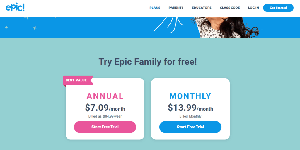 学校や塾で利用する場合は、教師が発行するクラスコードを使って無料でアクセスできる教育向けプラン「Epic School」もあります。こちらは平日7:00〜15:00の時間帯に限定されており、学校内での学習利用を想定したサービスです。自宅でEpic!を使用したい場合は、やはり個人でサブスクリプション登録が必要となります。