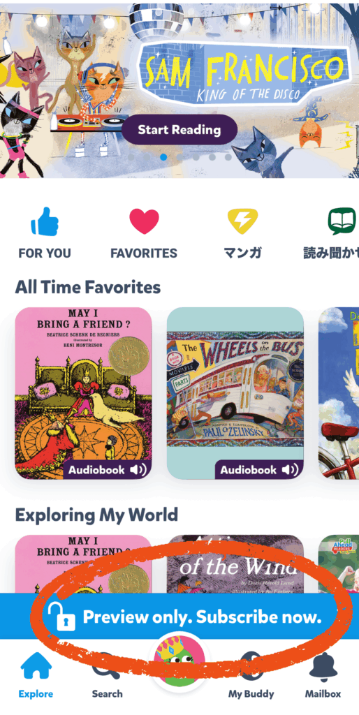 アプリの中には、絵本・チャプターブック・ノンフィクション・マンガなど、あらゆるジャンルが揃っています。ページめくりの動きも紙の本に近く、音声付き絵本ではプロのナレーターが自然な発音で読み聞かせてくれるため、「読む+聞く」両方の力を同時に鍛えられるのが大きな特長です。