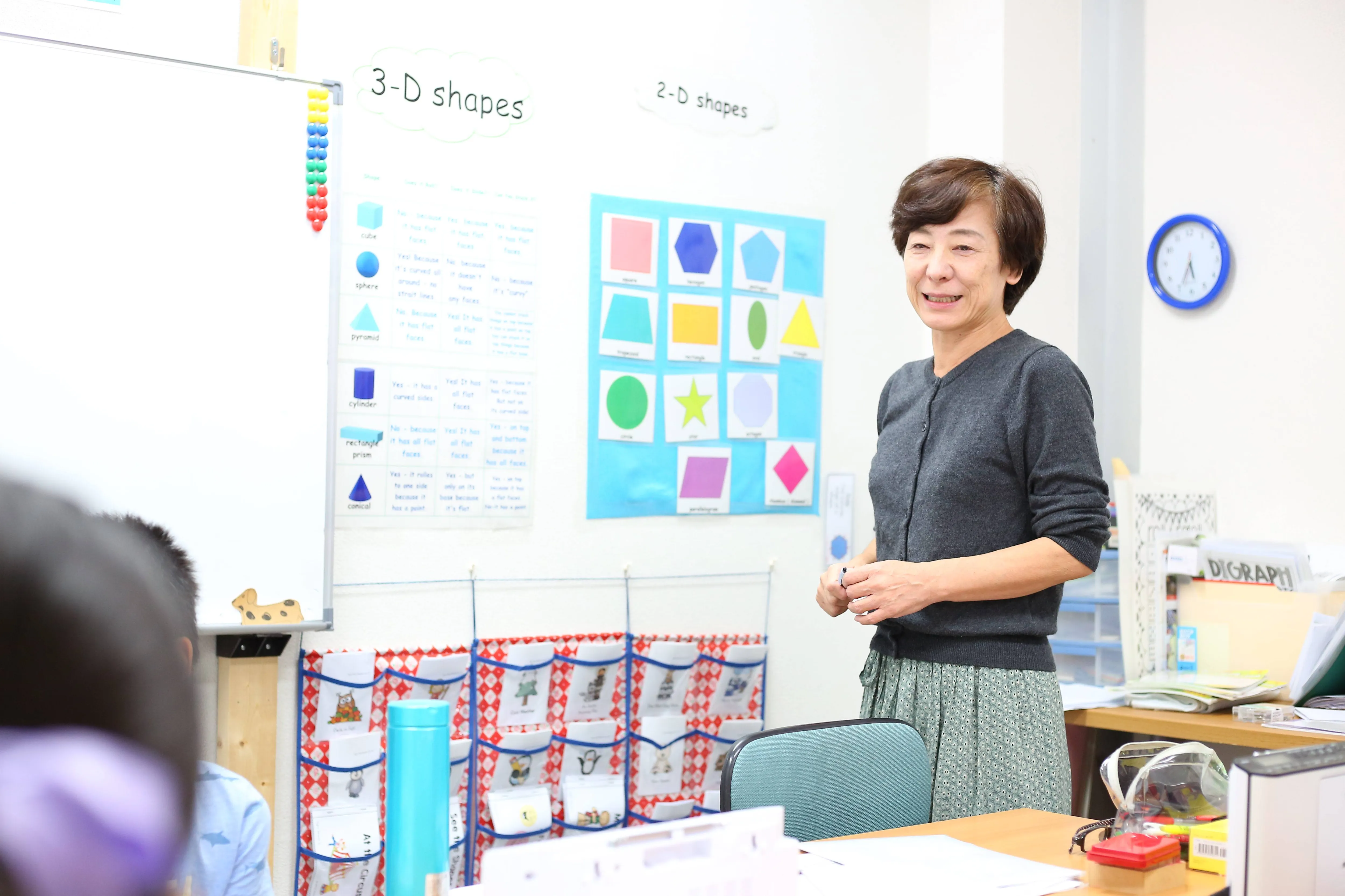 このクラスでは、ウォームアップで英語を話す楽しさを味わい、ジョリーフォニックスの多感覚的なアプローチで読み書きの基礎を固めていました。
