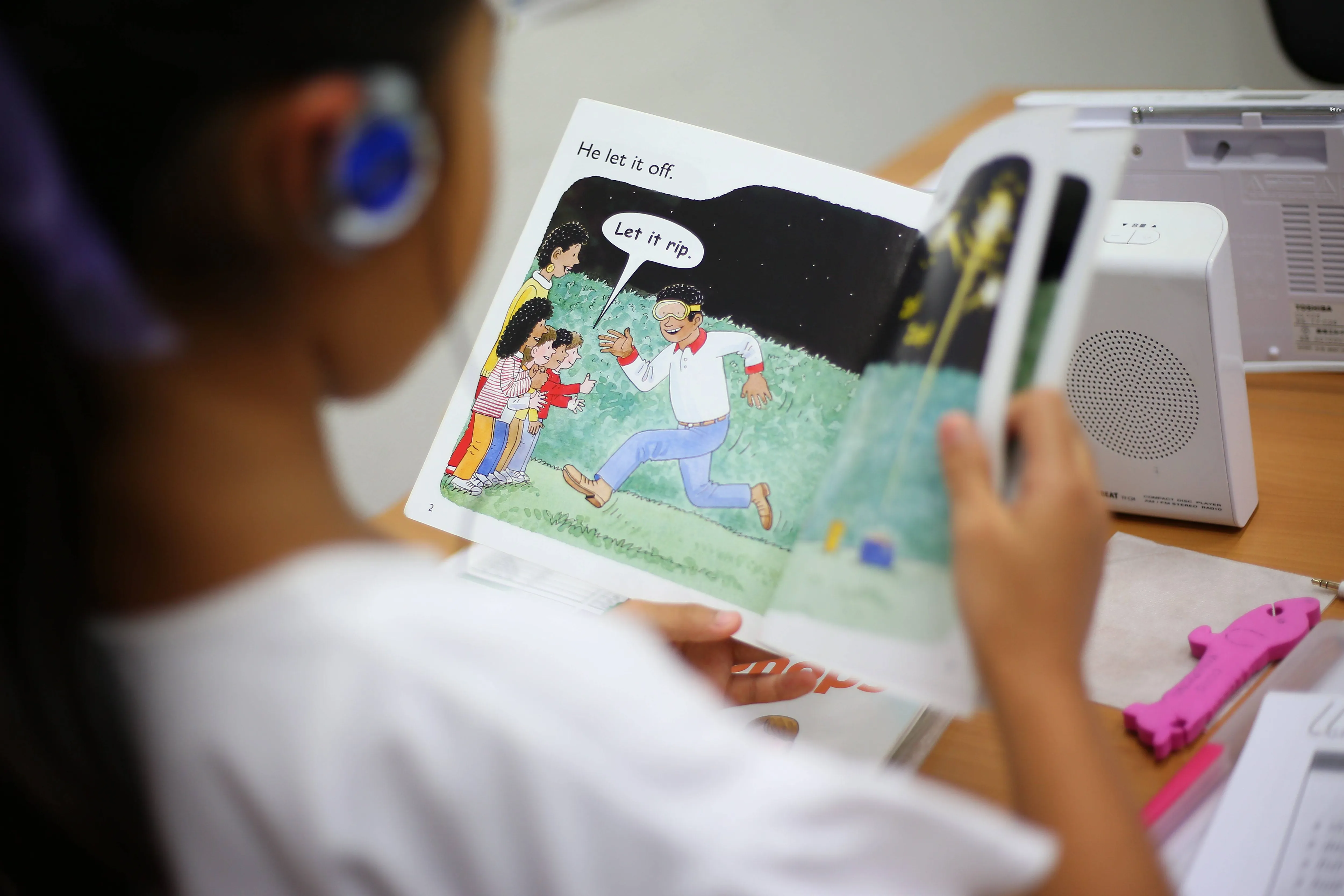 このプログラムは一つひとつの音を歌やアクション、ストーリーなど多感覚的に学ぶ点が特徴で、視覚・聴覚・身体の動きを通じて効果的に音を覚えられるのだそう。