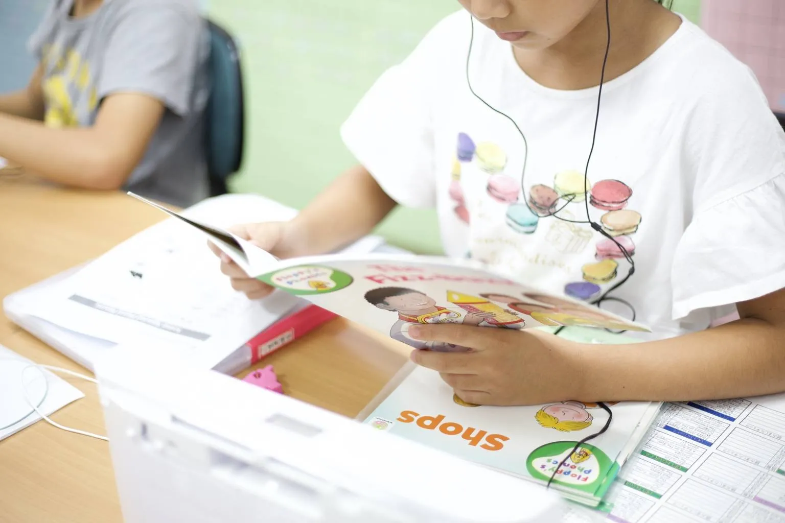 今回見学した小学生のKidsクラスは、C2、C3、C4までのレベルに対応している複数のクラスを見学させてもらいました。C0、C1のKidsクラスと同様、フォニックスや音読を基盤に、発音やリズムを身につける活動を行ったうえで、このクラスからはWritingがスタートし、文法を意識した学習が行われています。さらに多読を取り入れて「英語に親しみながら読む力」を育てるプログラムを実践。「楽しさ」と「基礎力の定着」を両立させた学習環境を整え、小学生の段階から英語の総合的な力を養うことを目指しています。